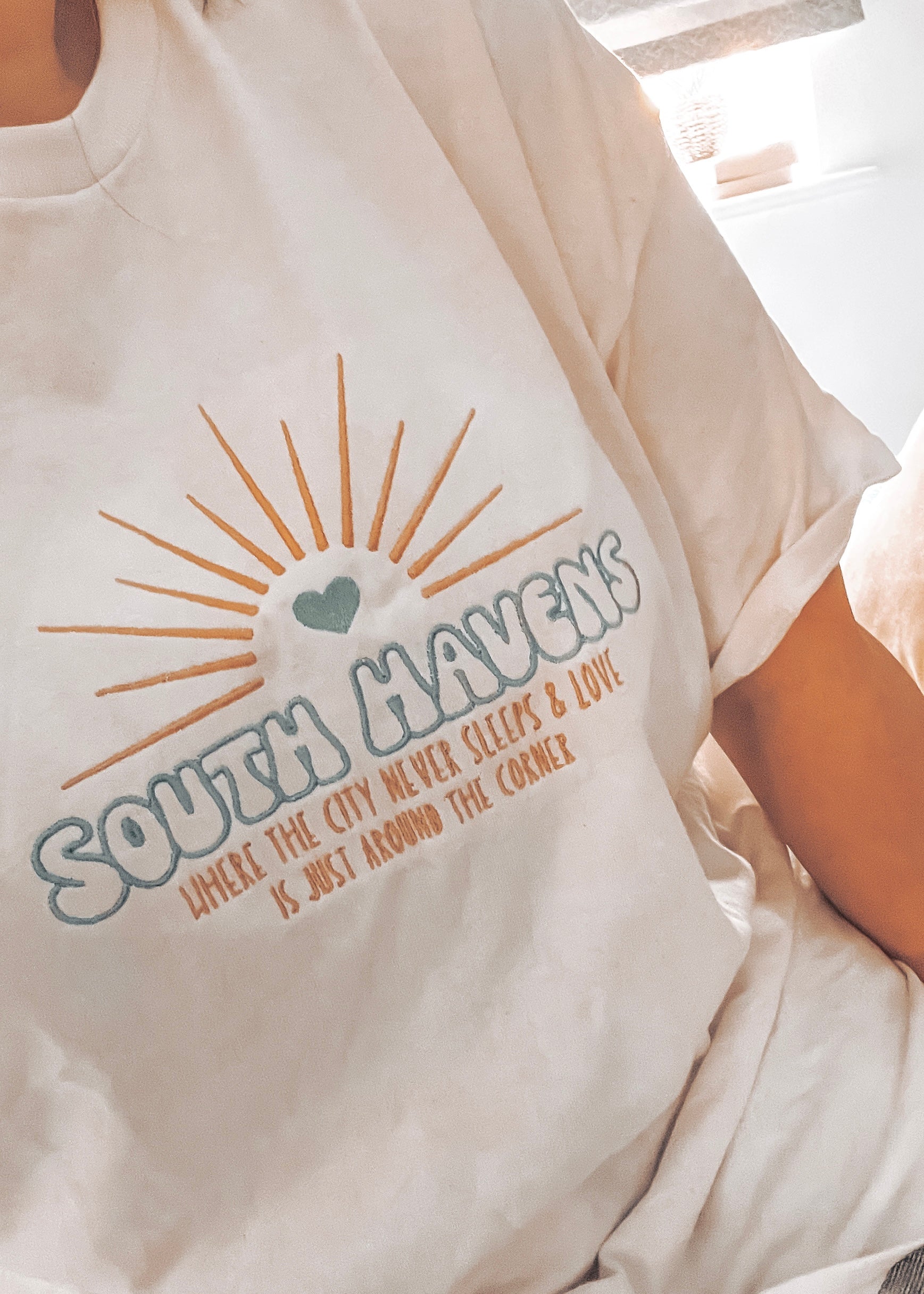 Step into the world of The Reverie Boys with this cosy, vintage-style South Havens T-shirt 🌅. Featuring a retro sunburst design and the tagline “Where the city never sleeps & love is just around the corner,” this tee brings the magic of the series to life.